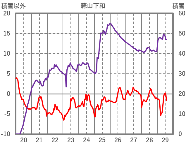 | 日 | 時 | 気温 | 降水 | 風向/風速 | 日照 | 積雪 | 降雪 |