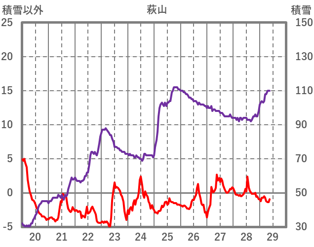 | 日 | 時 | 気温 | 降水 | 風向/風速 | 日照 | 積雪 | 降雪 |