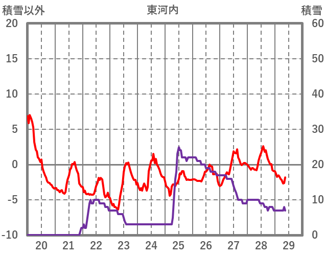| 日 | 時 | 気温 | 降水 | 風向/風速 | 日照 | 積雪 | 降雪 |