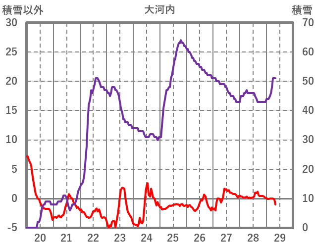 | 日 | 時 | 気温 | 降水 | 風向/風速 | 日照 | 積雪 | 降雪 |