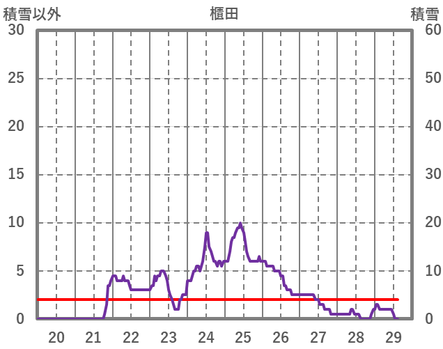 | 日 | 時 | 気温 | 降水 | 風向/風速 | 日照 | 積雪 | 降雪 |