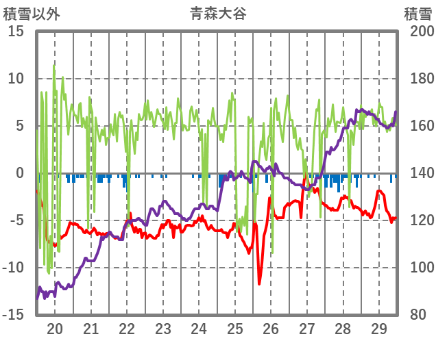 | 日 | 時 | 気温 | 降水 | 風向/風速 | 日照 | 積雪 | 降雪 |