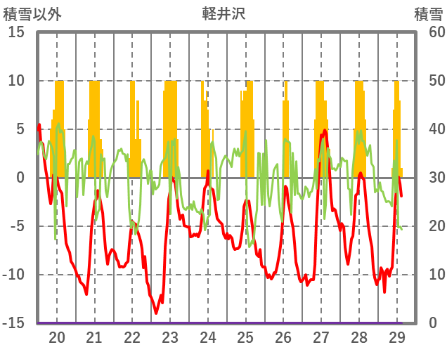| 日 | 時 | 気温 | 降水 | 風向/風速 | 日照 | 積雪 | 降雪 |