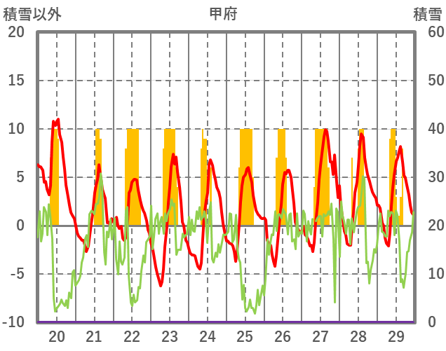 | 日 | 時 | 気温 | 降水 | 風向/風速 | 日照 | 積雪 | 降雪 |