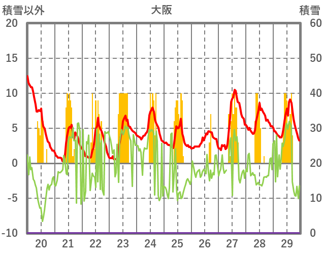 | 日 | 時 | 気温 | 降水 | 風向/風速 | 日照 | 積雪 | 降雪 |
