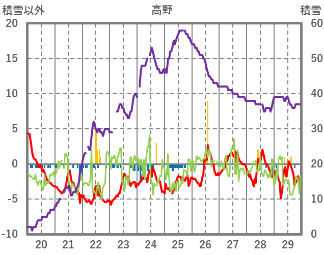 | 日 | 時 | 気温 | 降水 | 風向/風速 | 日照 | 積雪 | 降雪 |