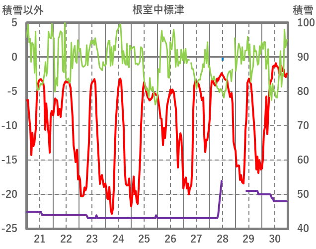 | 日 | 時 | 気温 | 降水 | 風向/風速 | 日照 | 積雪 | 降雪 |