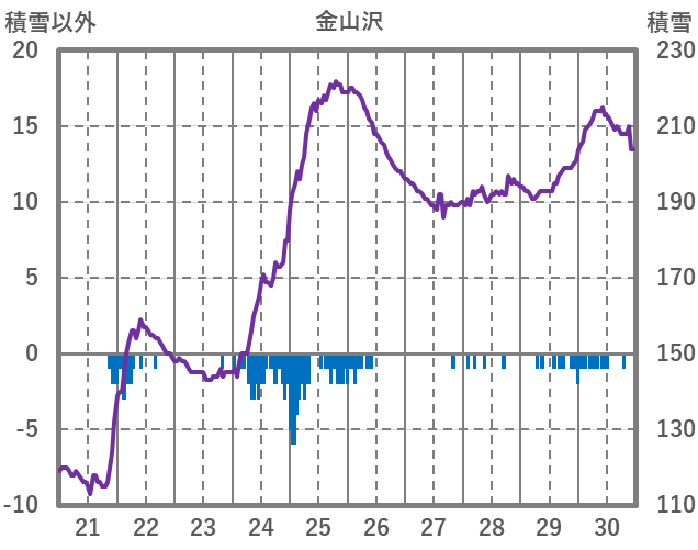 | 日 | 時 | 気温 | 降水 | 風向/風速 | 日照 | 積雪 | 降雪 |
