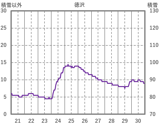 | 日 | 時 | 気温 | 降水 | 風向/風速 | 日照 | 積雪 | 降雪 |