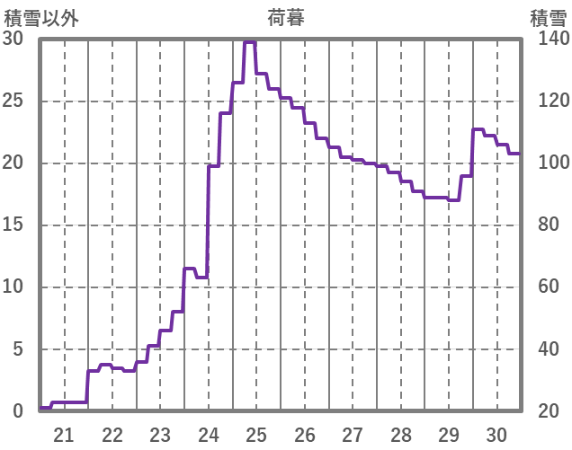 | 日 | 時 | 気温 | 降水 | 風向/風速 | 日照 | 積雪 | 降雪 |