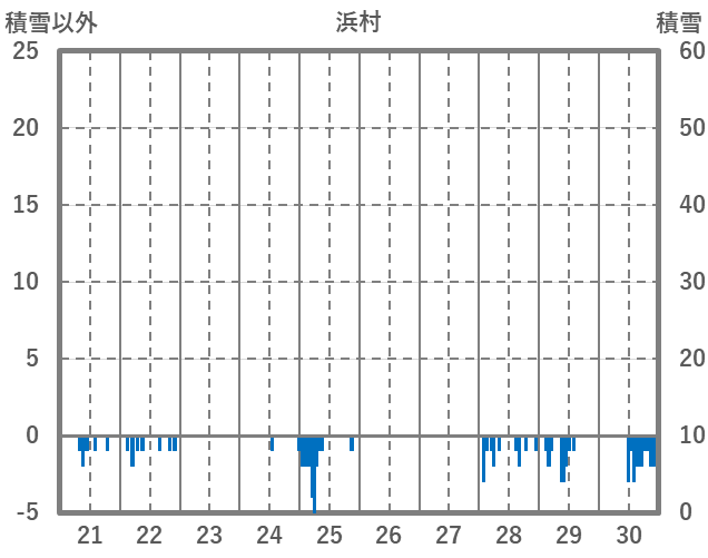 | 日 | 時 | 気温 | 降水 | 風向/風速 | 日照 | 積雪 | 降雪 |