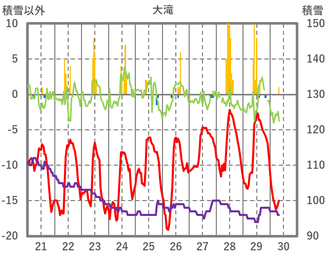 | 日 | 時 | 気温 | 降水 | 風向/風速 | 日照 | 積雪 | 降雪 |
