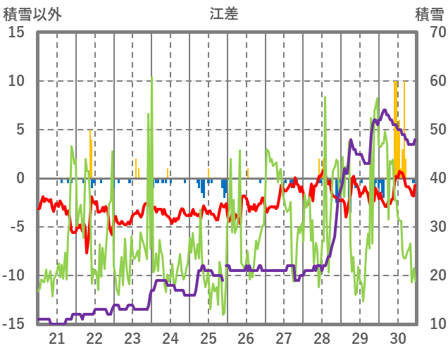 | 日 | 時 | 気温 | 降水 | 風向/風速 | 日照 | 積雪 | 降雪 |
