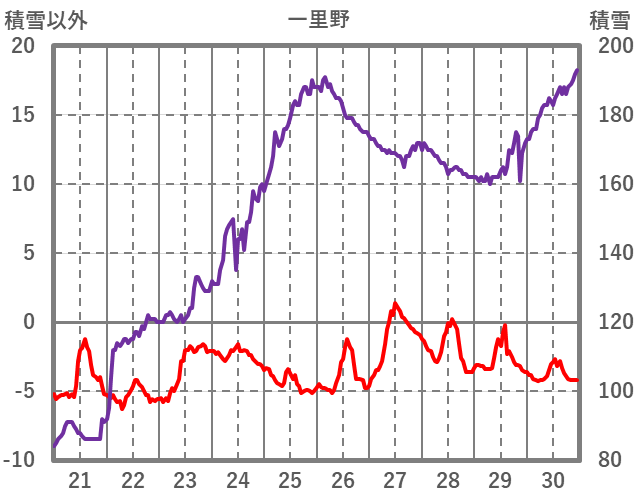 | 日 | 時 | 気温 | 降水 | 風向/風速 | 日照 | 積雪 | 降雪 |