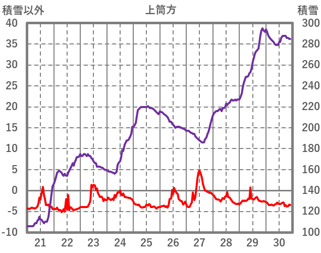 | 日 | 時 | 気温 | 降水 | 風向/風速 | 日照 | 積雪 | 降雪 |