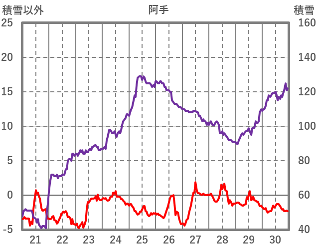 | 日 | 時 | 気温 | 降水 | 風向/風速 | 日照 | 積雪 | 降雪 |