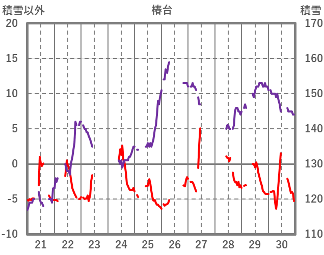 | 日 | 時 | 気温 | 降水 | 風向/風速 | 日照 | 積雪 | 降雪 |