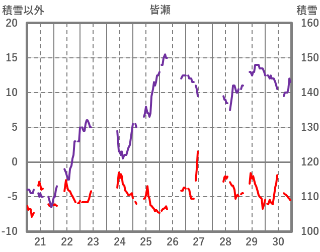 | 日 | 時 | 気温 | 降水 | 風向/風速 | 日照 | 積雪 | 降雪 |