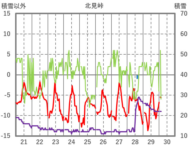 | 日 | 時 | 気温 | 降水 | 風向/風速 | 日照 | 積雪 | 降雪 |