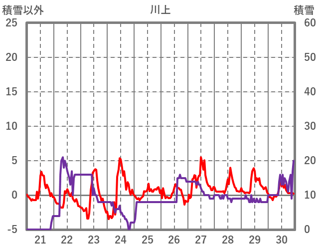 | 日 | 時 | 気温 | 降水 | 風向/風速 | 日照 | 積雪 | 降雪 |
