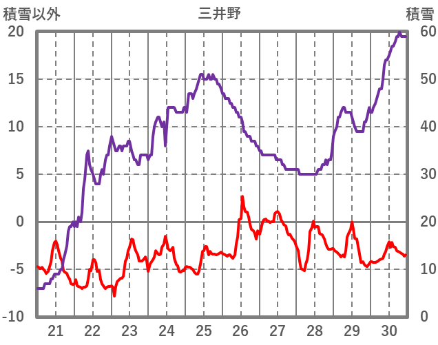 | 日 | 時 | 気温 | 降水 | 風向/風速 | 日照 | 積雪 | 降雪 |