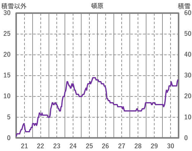 | 日 | 時 | 気温 | 降水 | 風向/風速 | 日照 | 積雪 | 降雪 |