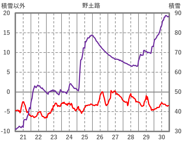 | 日 | 時 | 気温 | 降水 | 風向/風速 | 日照 | 積雪 | 降雪 |