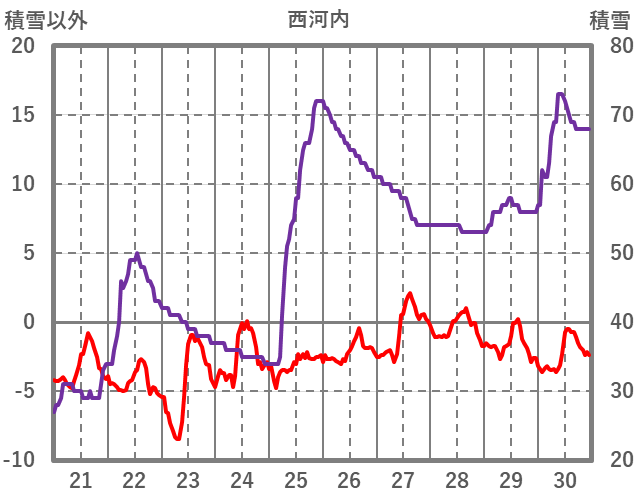 | 日 | 時 | 気温 | 降水 | 風向/風速 | 日照 | 積雪 | 降雪 |