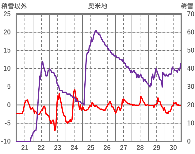 | 日 | 時 | 気温 | 降水 | 風向/風速 | 日照 | 積雪 | 降雪 |
