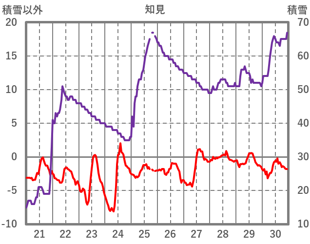 | 日 | 時 | 気温 | 降水 | 風向/風速 | 日照 | 積雪 | 降雪 |