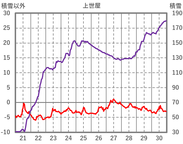 | 日 | 時 | 気温 | 降水 | 風向/風速 | 日照 | 積雪 | 降雪 |