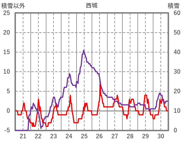 | 日 | 時 | 気温 | 降水 | 風向/風速 | 日照 | 積雪 | 降雪 |