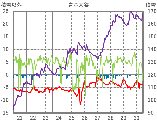 | 日 | 時 | 気温 | 降水 | 風向/風速 | 日照 | 積雪 | 降雪 |