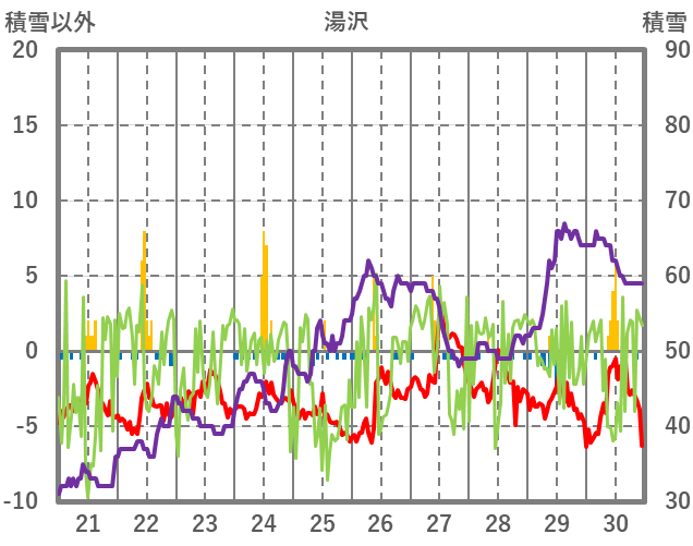 | 日 | 時 | 気温 | 降水 | 風向/風速 | 日照 | 積雪 | 降雪 |