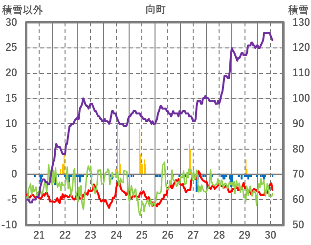 | 日 | 時 | 気温 | 降水 | 風向/風速 | 日照 | 積雪 | 降雪 |