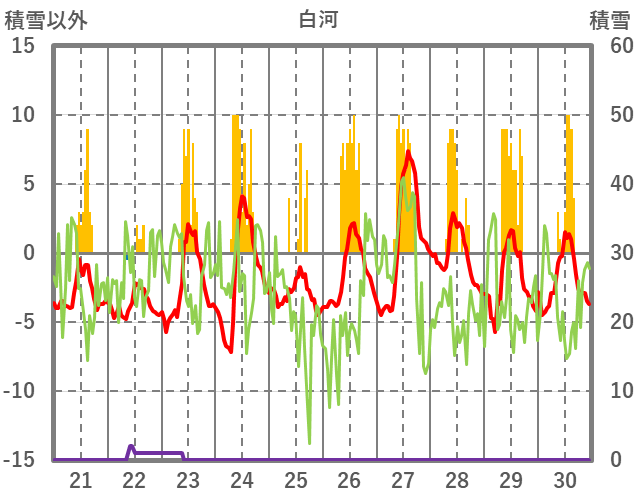 | 日 | 時 | 気温 | 降水 | 風向/風速 | 日照 | 積雪 | 降雪 |