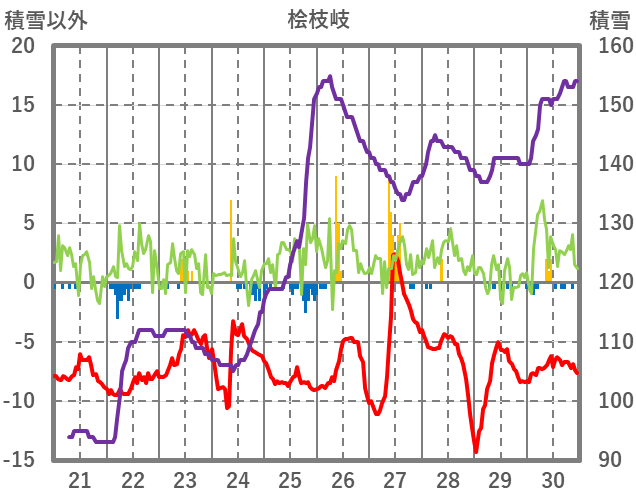 | 日 | 時 | 気温 | 降水 | 風向/風速 | 日照 | 積雪 | 降雪 |