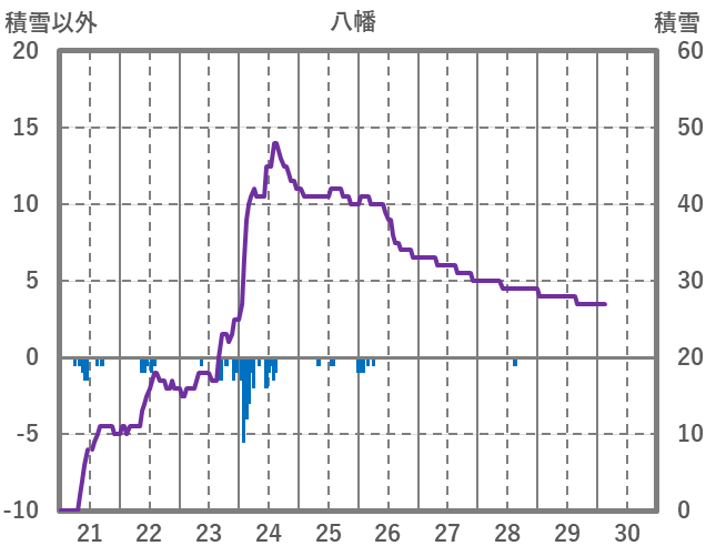 | 日 | 時 | 気温 | 降水 | 風向/風速 | 日照 | 積雪 | 降雪 |