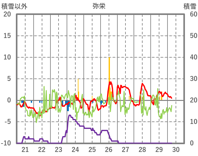 | 日 | 時 | 気温 | 降水 | 風向/風速 | 日照 | 積雪 | 降雪 |