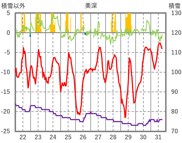 | 日 | 時 | 気温 | 降水 | 風向/風速 | 日照 | 積雪 | 降雪 |