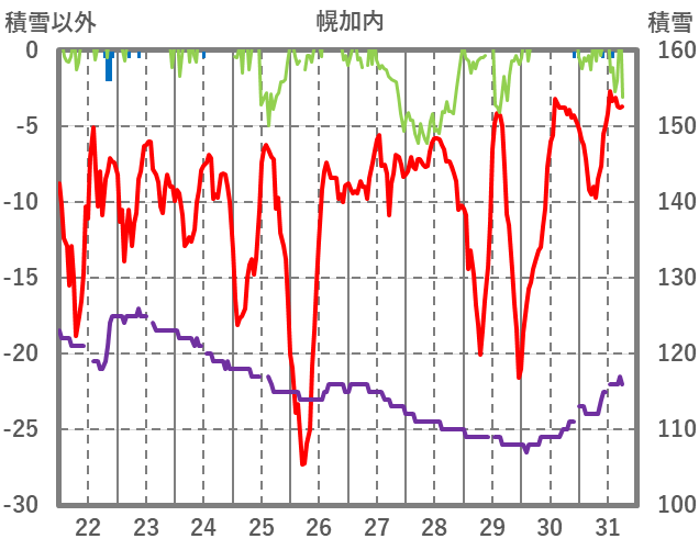 | 日 | 時 | 気温 | 降水 | 風向/風速 | 日照 | 積雪 | 降雪 |