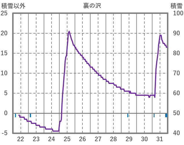 | 日 | 時 | 気温 | 降水 | 風向/風速 | 日照 | 積雪 | 降雪 |