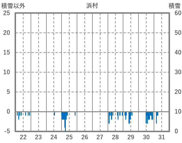 | 日 | 時 | 気温 | 降水 | 風向/風速 | 日照 | 積雪 | 降雪 |