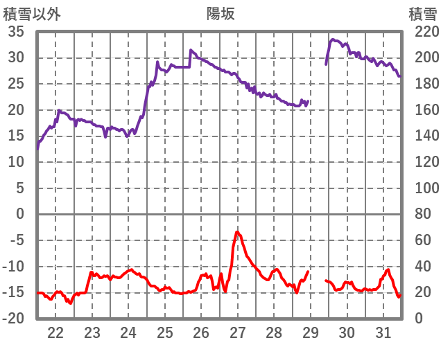 | 日 | 時 | 気温 | 降水 | 風向/風速 | 日照 | 積雪 | 降雪 |