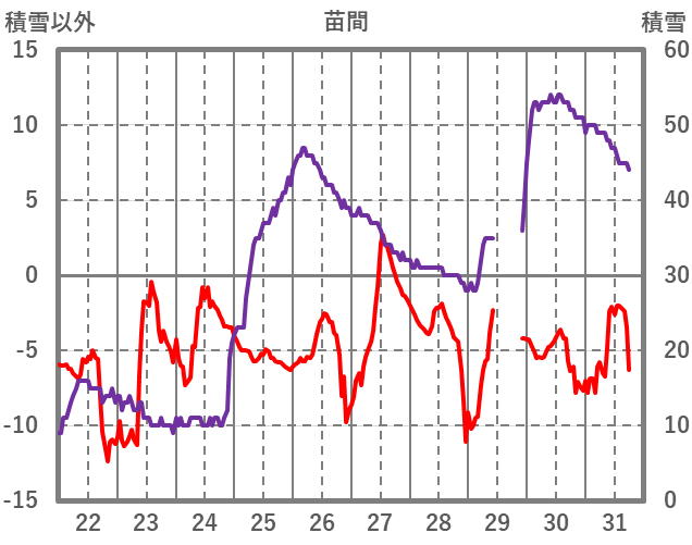 | 日 | 時 | 気温 | 降水 | 風向/風速 | 日照 | 積雪 | 降雪 |