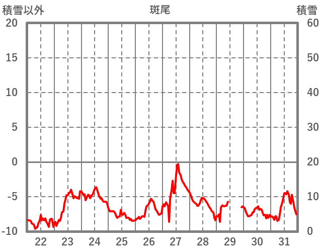| 日 | 時 | 気温 | 降水 | 風向/風速 | 日照 | 積雪 | 降雪 |