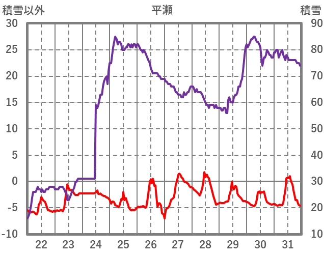 | 日 | 時 | 気温 | 降水 | 風向/風速 | 日照 | 積雪 | 降雪 |