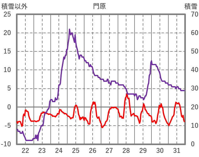 | 日 | 時 | 気温 | 降水 | 風向/風速 | 日照 | 積雪 | 降雪 |