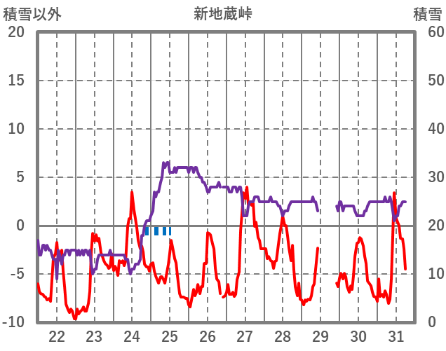 | 日 | 時 | 気温 | 降水 | 風向/風速 | 日照 | 積雪 | 降雪 |