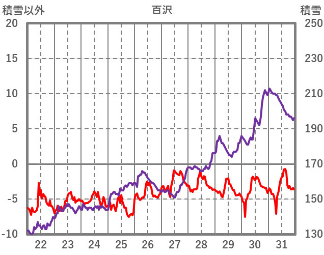 | 日 | 時 | 気温 | 降水 | 風向/風速 | 日照 | 積雪 | 降雪 |